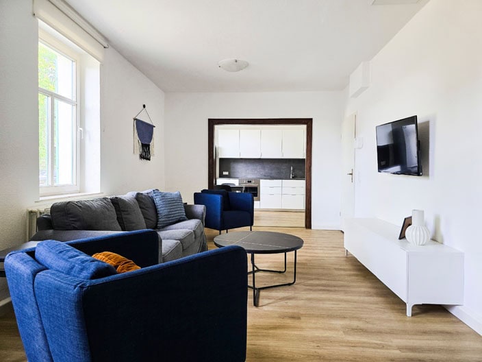 Diese 2025 komplett renovierte Ferienwohnung mit einer Wohnfläche von 90qm ist modern eingerichtet und bietet Platz für bis zu fünf Gäste. Die Ferienwohnung bietet viel Platz und eignet sich deshalb auch hervorragend als Monteurwohnung. Sie befindet sich im Erdgeschoss eines Mehrfamilienhauses, in welchem KAHSA Apartments noch weitere Ferienwohnung anbietet.